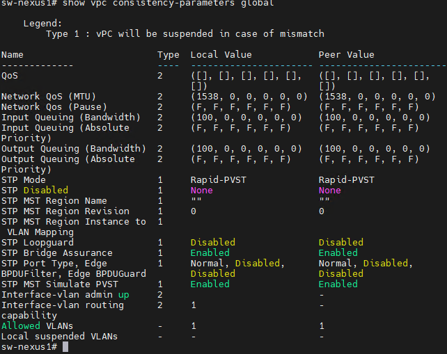 3. Kontrola konzistencie konfigurácie – show vpc consistency-parameters global